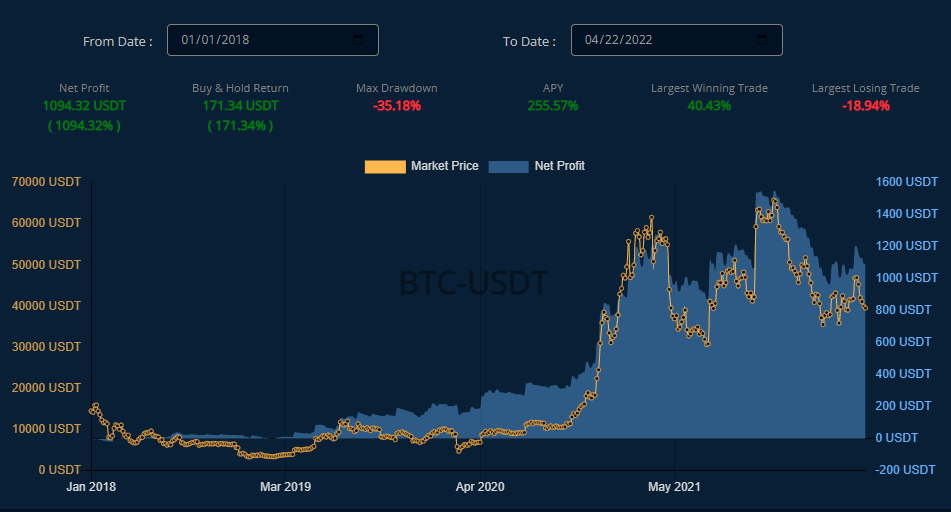 Swing Trader bot have very promising backtesting results as well. Try the backtesting feature below where you can evaluate the bot's performances with more than 3 years historical data.